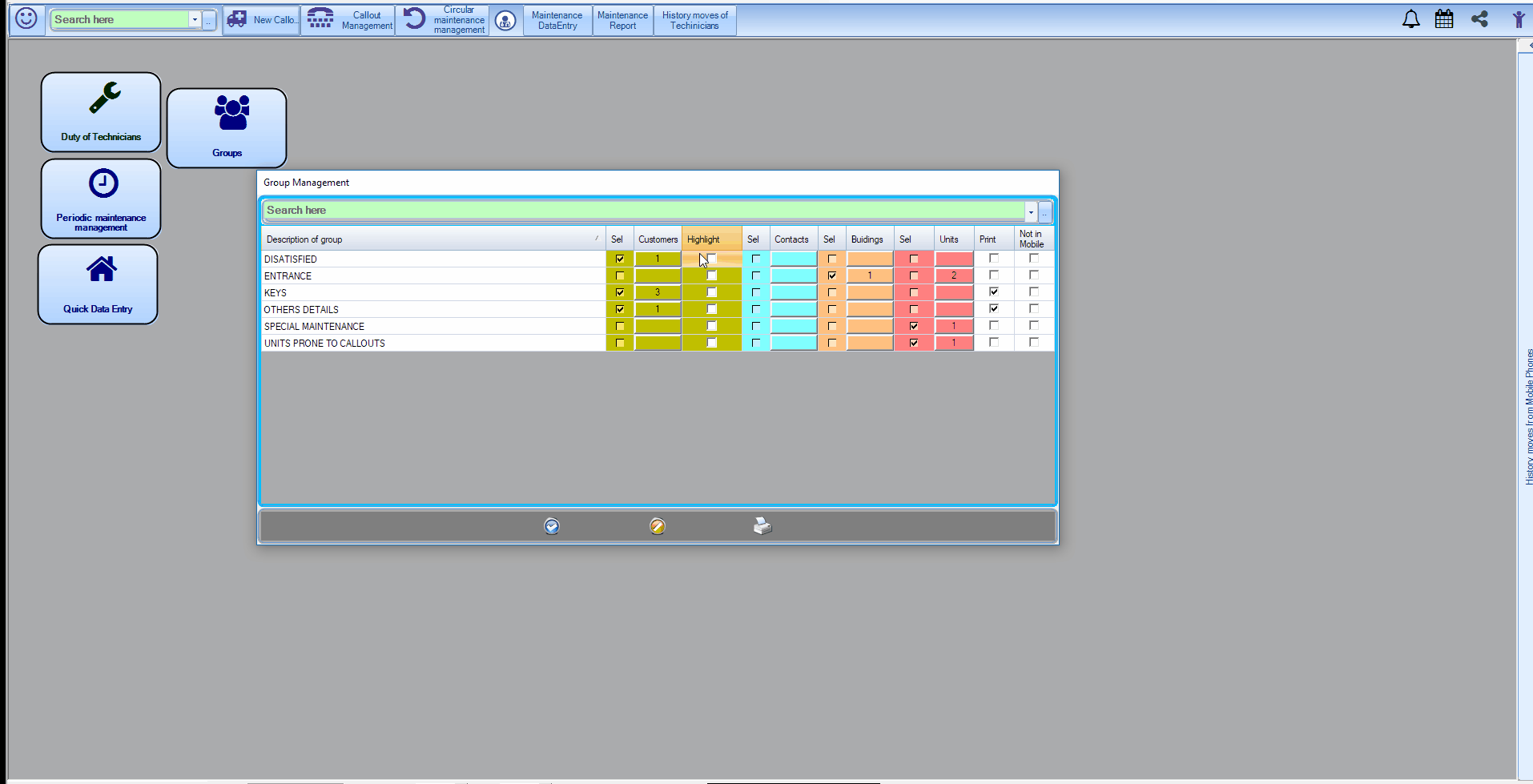 Whenever you click inside a record in circular management it will display its customer/unit/building groups as well.