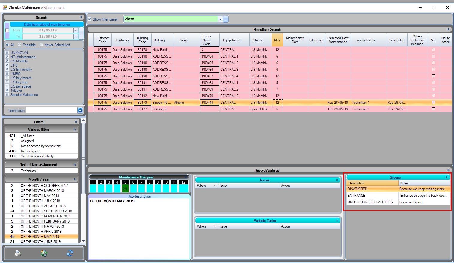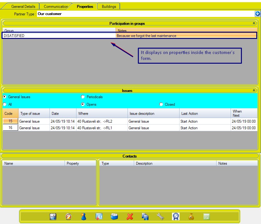 Whenever you click inside a record in circular management it will display its customer/unit/building groups as well.