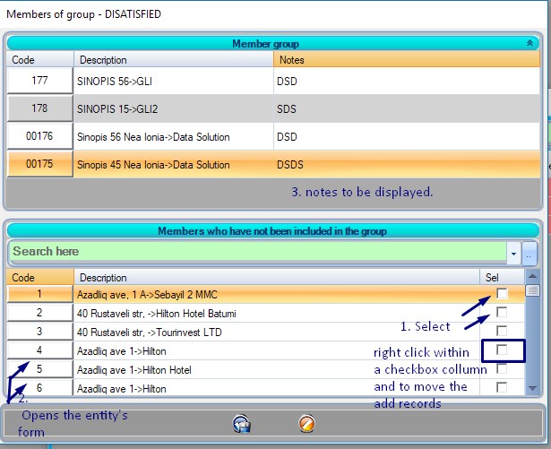 • Sel Check “Sel” in the second part, to select the records that you want to add to the group, then right click on one checkbox and click “add selected”