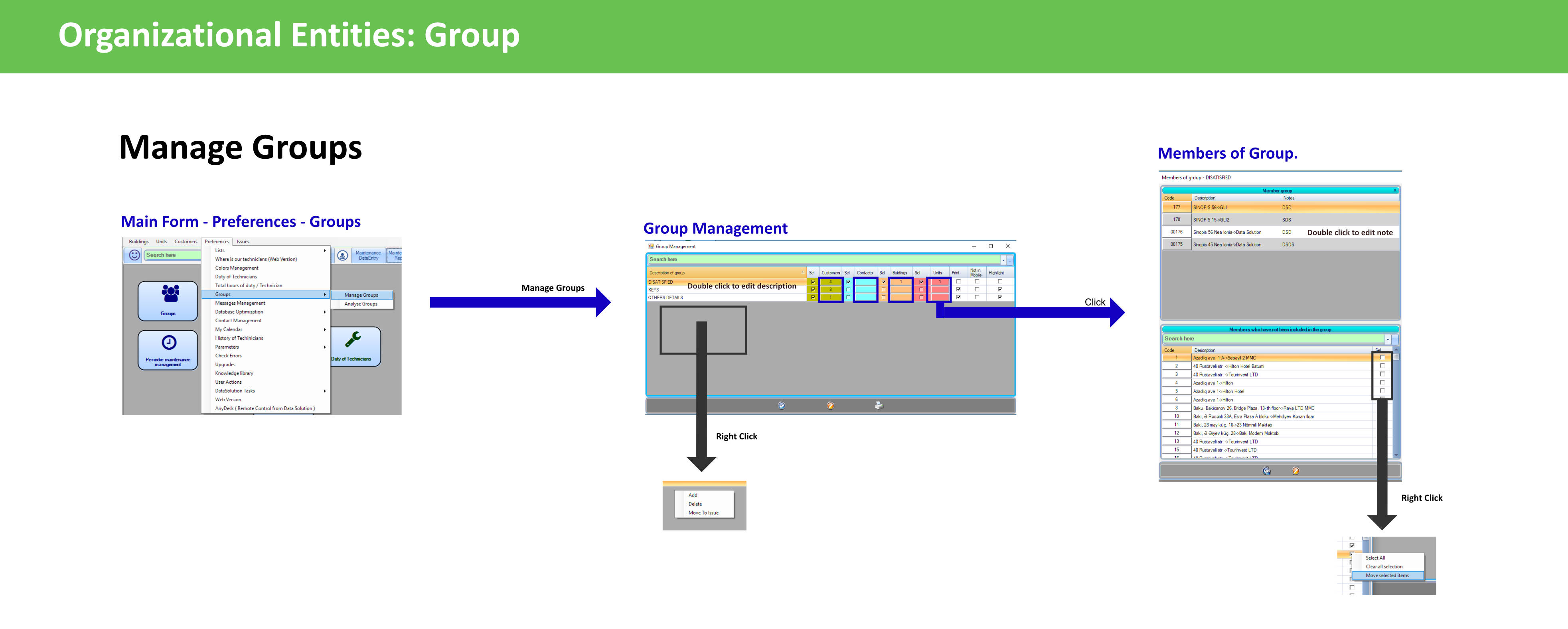 • Remove an entity by right clicking to it in the member group section