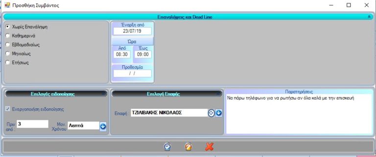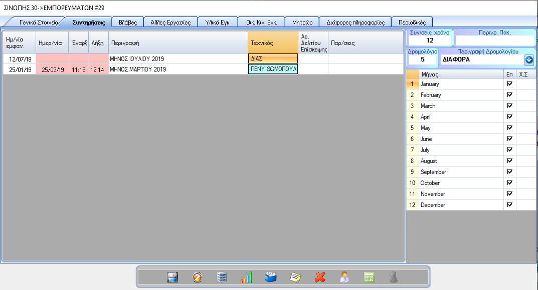 Όταν κάποια συντήρηση πλησιάζει, θα ειδοποιηθείτε για αυτήν. Μπορείτε να ρυθμίσετε τις συντηρήσεις από την φόρμα ανυψωτικού στην καρτέλα “Συντηρήσεις”.