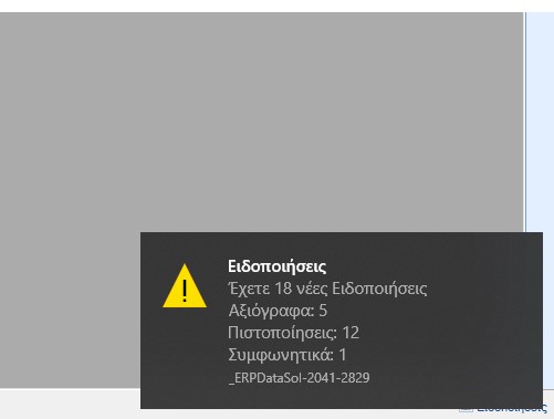 Ειδοποιήσεις στην κεντρική φόρμα