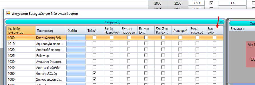 Από την φόρμα διαχείρισης ενεργειών των θεμάτων, επιλέγοντας “Εμφ. Ειδοπ.” σε κάποια ενέργεια, μπορείτε να ενεργοποιήσετε την αποστολή ειδοποιήσεων σε αυτήν.
