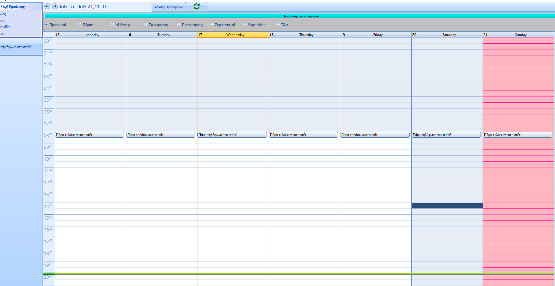Στο ημερολόγιο εμφανίζονται συμβάντα όπως: