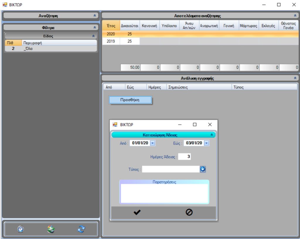 Βήμα 2ο: Προσθήκη και διαγραφή άδειας στον υπάλληλο
