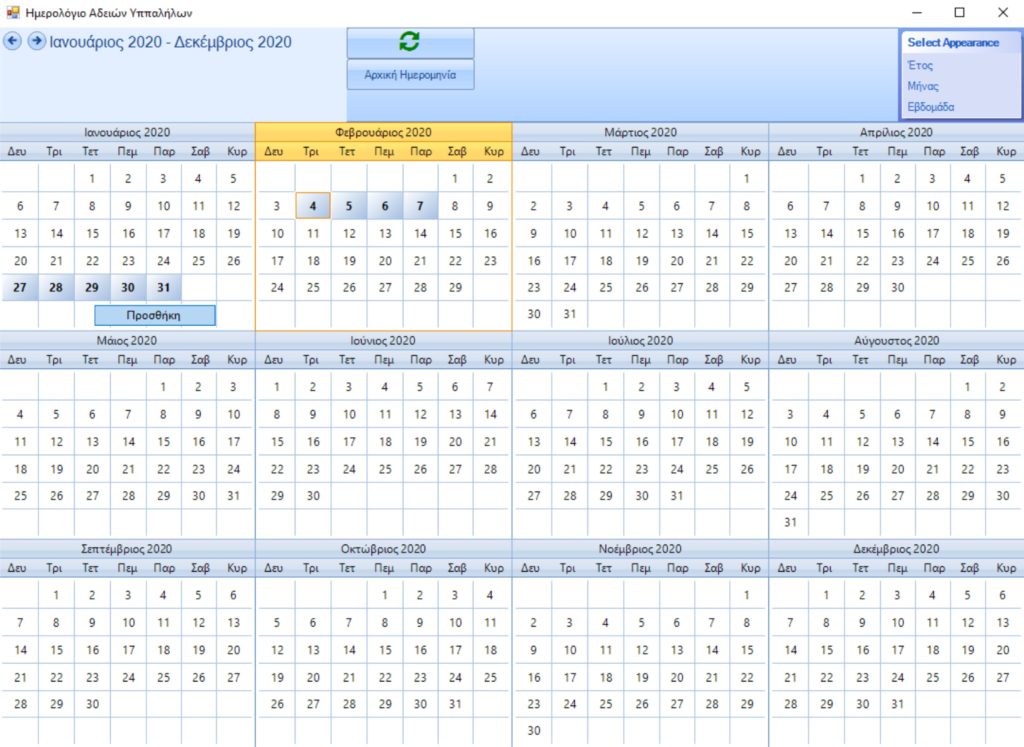 Με την ακόλουθη διαδικασία μπορούμε να καταχωρήσουμε τις ημέρες της άδειας του Υπαλλήλου σε ένα έτος.