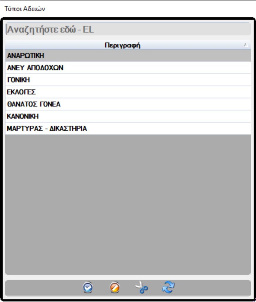 - Στο πεδίο τύπος επιλέγετε το λόγο της άδειας (βλέπετε Εικόνα 5) και πατάτε ΟΚ.