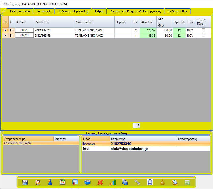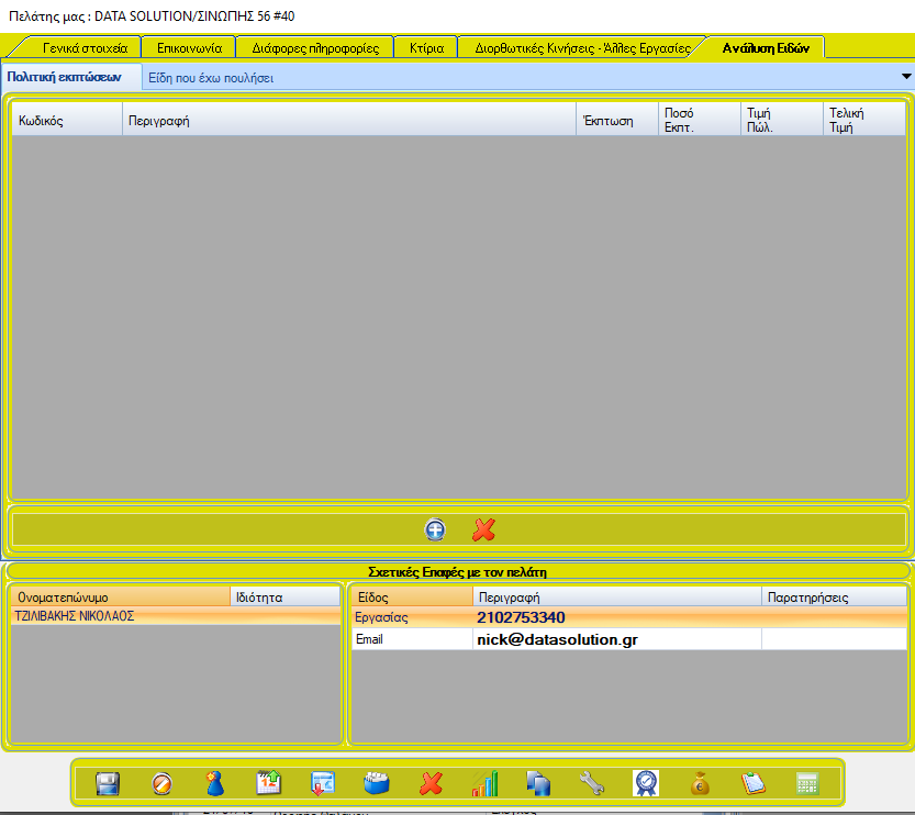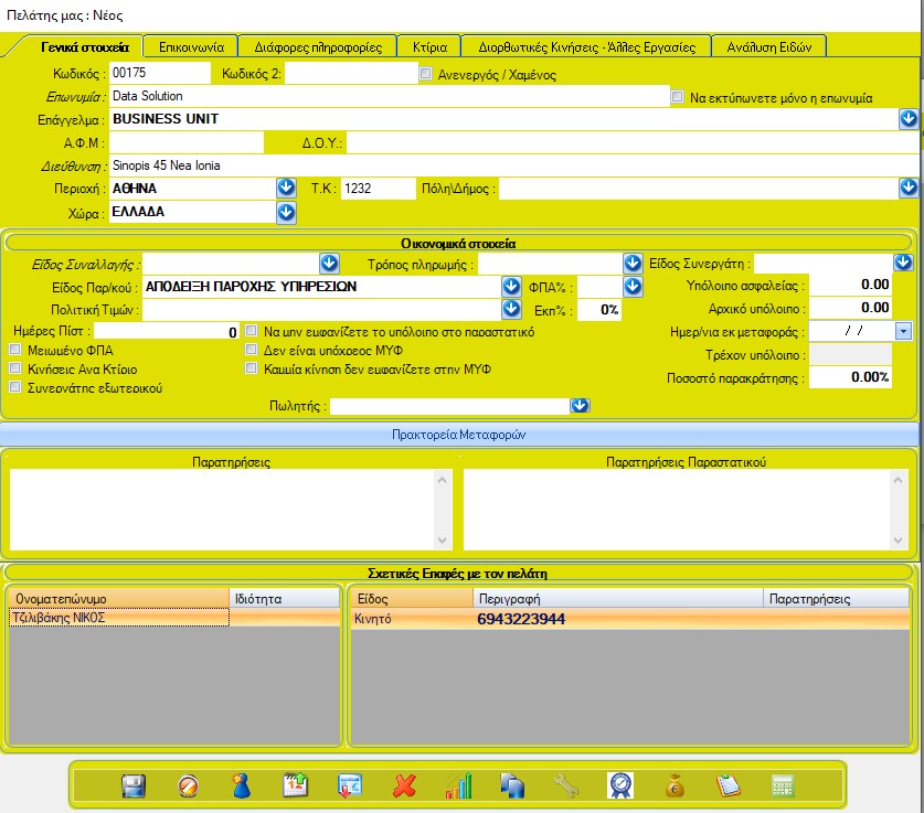 Από εδώ γίνεται η διαχείριση των βασικών πληροφοριών του πελάτη.
