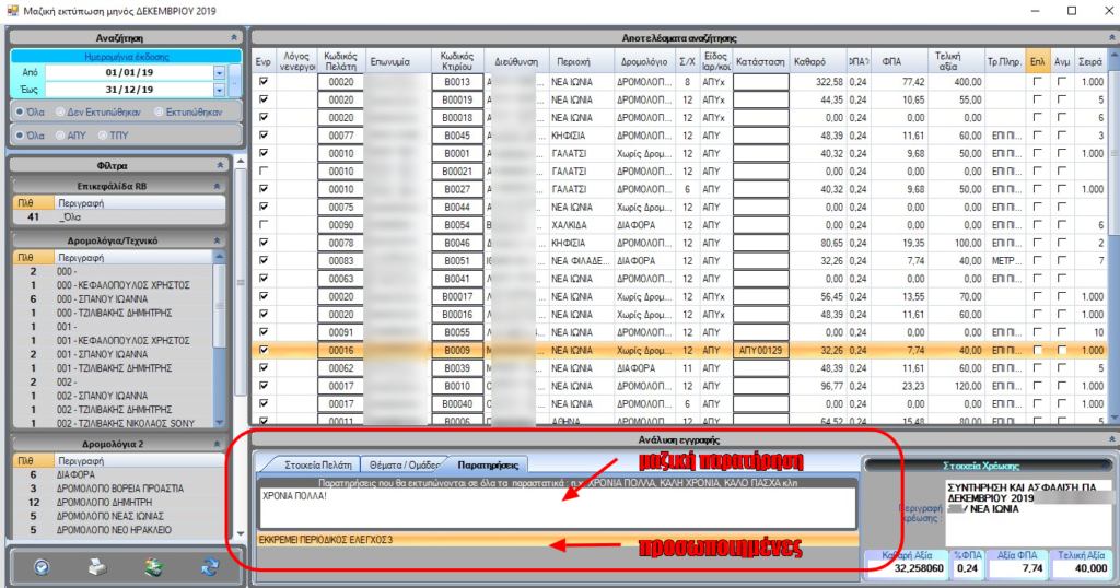 3. Καταχώρηση θεμάτων – παρατηρήσεων μαζικά σε πελάτες